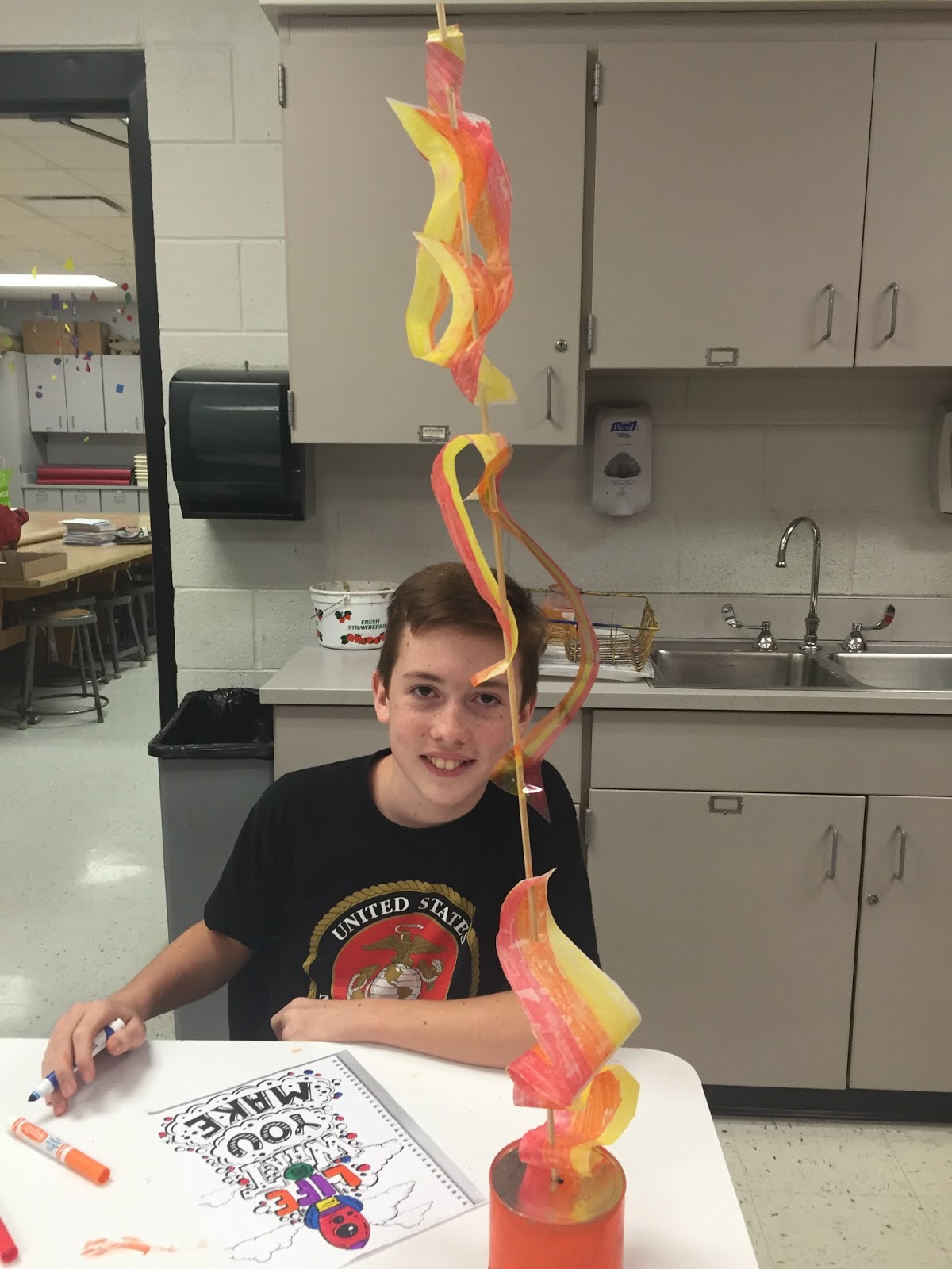 Sicth graders wrapped up the semester with a non-objective project after learning about Dale Chihuly and his blown glass sculptures like that in the Indy Children's Museum.